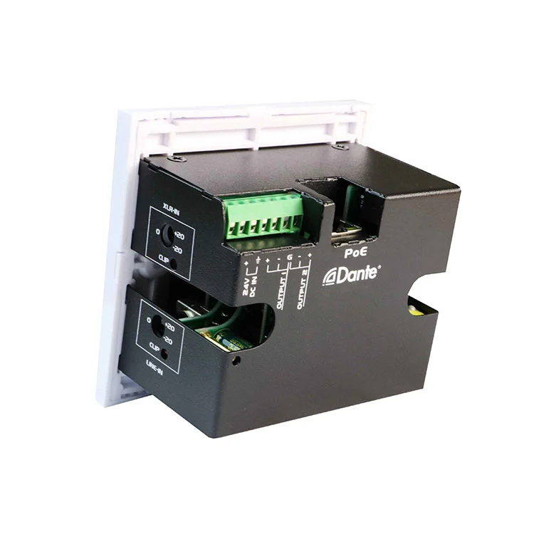 Input antarmuka 2CH DANTE 2CH 2 Input/Line Inputs X 2 Panel Antarmuka sangat cocok untuk aplikasi audio profesional, seperti ruang konferensi, pengaturan suara langsung, studio siaran, dan sistem AV yang diinstal, di mana konversi Dante-to-analog dan analog-ke-Dante yang dapat diandalkan, diperlukan dalam faktor bentuk yang ringkas dan bebas dari rak. Desainnya yang dipasang di dinding memungkinkan integrasi yang bersih dan efisien ke berbagai lingkungan sambil mempertahankan kinerja audio berkualitas tinggi.