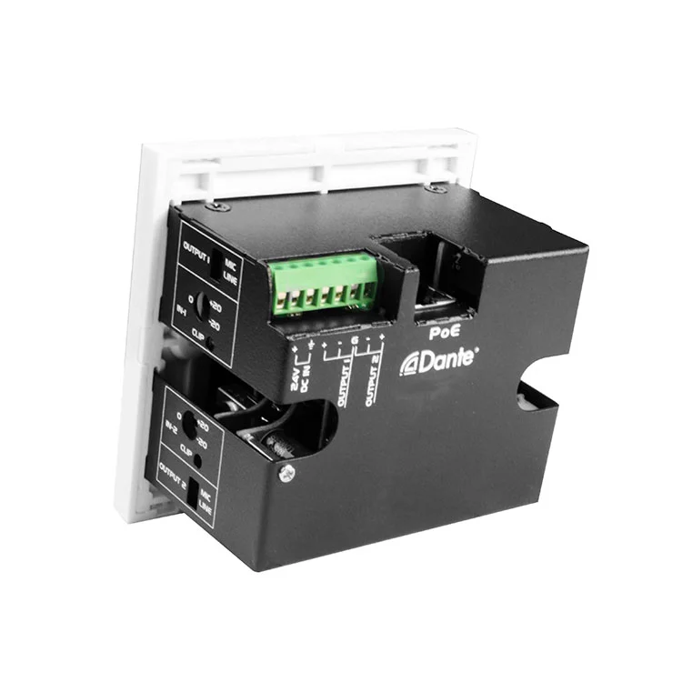 Input antarmuka 2CH DANTE 2CH 2 Input/Line Inputs X 2 Panel Antarmuka sangat cocok untuk aplikasi audio profesional, seperti ruang konferensi, pengaturan suara langsung, studio siaran, dan sistem AV yang diinstal, di mana konversi Dante-to-analog dan analog-ke-Dante yang dapat diandalkan, diperlukan dalam faktor bentuk yang ringkas dan bebas dari rak. Desainnya yang dipasang di dinding memungkinkan integrasi yang bersih dan efisien ke berbagai lingkungan sambil mempertahankan kinerja audio berkualitas tinggi.